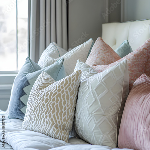 Artistic Display of Plush Pillows Creating Comfort and Sophistication in a Bedroom Setting