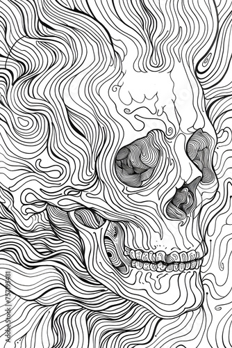 abstract, skull, line, fluidity, motion, swirl, artistic, creativity, life, death, mystery, monochrome, contemporary, modern, drawing, illustration, pattern, texture, wave, curve, ornamental, design, concept, decoration, wallpaper, mystic, fantasy, grisly, gothic, hallucinogen, intricate, detailed, seamless, print, fashion, textile, trend