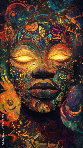 Artistic representation of cultural pride through a glowing mask: Black History Month