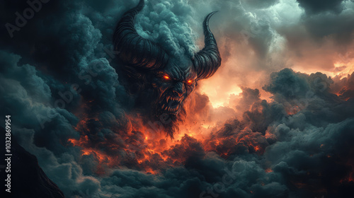 devilish, figure, emerging, stormy, swirling, ominous, haunting, chaotic, aethereal, supernatural, frightening, shadowy, disturbing, intimidating, menacing, powerful, enigmatic, spectral, high-coloured, atmospheric, dynamic, twisted, unnatural, ghostly, lurking, grinning, nightmarish, distorted, chilling, threatening, shadow, brooding