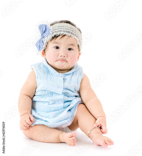 baby, girl, isolated, white, cute, background, portrait, little, beautiful, studio, pretty, adorable, children, sitting, asian, children, childhood, infant, joy, small, beauty, toddler, asia, chinese, blue, korean, japanese, funny, sweet, daughter, sad, upset, grieved, unhappy, leg, foot, emotion, temper, control