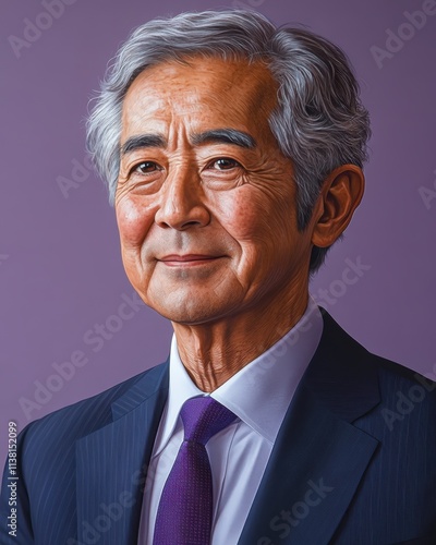 Asian man with a smile on his face is wearing a suit and a shirt in studio color background
