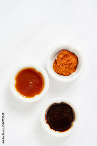asian sauces on the white