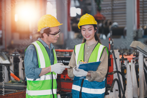 Asian team employee working in factory,Group of Engineer Asia are control manufacturing in factory industrial