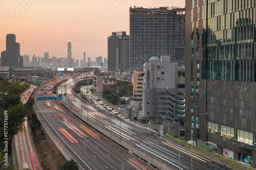 Asoke Expressway Toll, Expressway tollgate, Cars at gate toll payment on expressway in Bangkok, Thailand