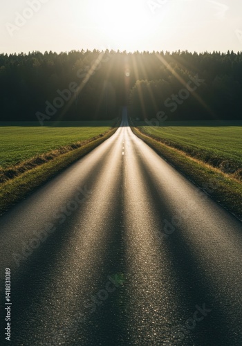 road, country, path, countryside, landscape, sunset, sunbeam, sun, ray, tree, field, grass, green, asphalt, shadow, light, gold, hours, summer, rural, nature, way, journey, travel, horizon, perspective, direction, straight, long, distance, drive, scenic, route, sunlit, yellow, dark, bright, warm, peaceful, tranquil, serene, calm, hope, adventure, exploration, open, destination, freedom
