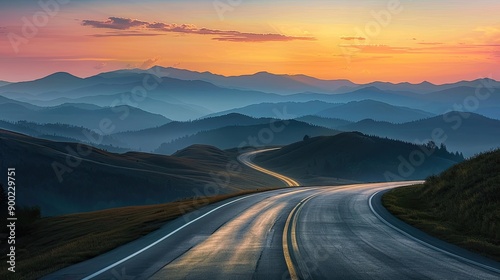 mountain, road, highway, landscape, travel, asphalt, nature, sunrise, journey, drive, route, sky, way, horizon, cloud, speed, rural, empty, background, natural, tree, scenic, scenery, transportation, sunset, car, country, summer, green, hill, countryside, beautiful, traffic, trip, transport, forest, motion, line, environment, tour tourism, light, view, generative, ai