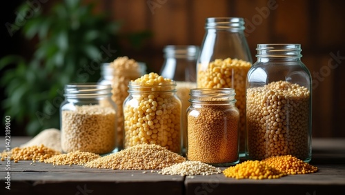 grain, food, healthy, ingredient, nourishment, cooking, diet, variety, cereal, pulse, seed, storage, jar, glasses, container, kitchen, organic, natural, healthy eating, receipe, preparation, kitchen utensile, food photography, culinary, artisanal, fresh, tasty, delicious, colourful, textured, alimentary