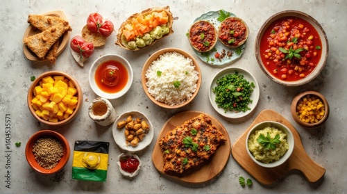 Assorted Indian Cuisine Dishes with Rice Lentils and Vegetables on Light Surface