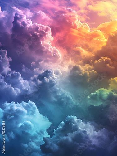Assorted intensely iridescent deep color rainbow-chromed clouds. Vertical rainbow sky background. High quality