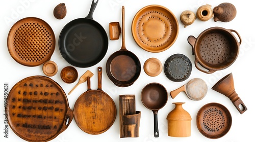 kitchen utensile, cookware, wooden, metal, utensil, dish, food, cooking, design, background, decor, rustic, brown, natural, kitchen, home, style, accessory, pattern, topview, modern, vintage, ceramic, porcelain, arrangement, collection, lifestyle, tableware, texture, display, set, pan, pot, bowl, wood, object
