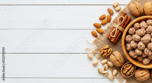 Assortment of Roasted Nuts and Spices for Healthy Snacking