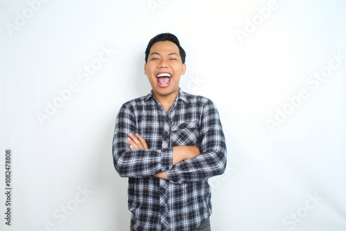 man, shouting, male, asian, portrait, call, crossed, hand, announcement, happy, isolated, screaming, folded, arm, cheerful, guy, excited, young, adult, person, studio, joyful, expression, mouth, positive, fun, background, confidence, casual attire, advertisement, emotion, scream, gesture, standing, victory, smiling, face, celebrate, cool, discount, fist, open, sale, succeed, successful, surprise, teenage, attractive, cut-out