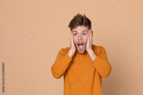 guy, yellow, worried, problem, mistake, confuse, fearful, suffer, forget, panicked, imagine, imagination, idea, doubt, doubtful, thinking, clueless, adult, young, 20, male, model, photogenic, casual attire, portrait, beard, attractive, person, people, stylish, studio, white, man, lifestyle, 1, caucasian, background, beauty, face, beautiful, style, spanish, fashion, blond