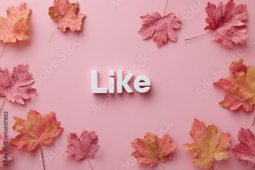 Audience Feedback Featuring a Like Button and Fall Leaves on a Pink Backdrop