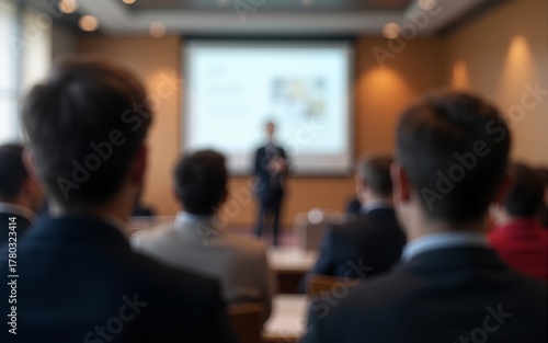 Audience Watching a Presentation. Defocused Blurred Presenter During Conference Meeting. High quality