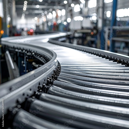 automation, conveyer, system, industrial, manufacturing, factory, production, technology, equipment, machinery, transport, logistic, assembly, line, process, engineering, industry, metal, steel, infrastructure, mechanism, robotic, innovation, efficiency, distribution, movement, roller, belt, facility, plant, operation, automated, machine, structure, component, part, support, curve, perspective, indoor, workspace, business, supply, chain, delivery, good, product, motion, speed