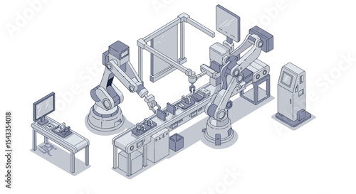 robotic, assembly, manufacturing, technology, factory, automation, isometric, industrial, machinery, production, innovation, engineering, electronic, mechanical, system, efficiency, precision, conveyer, machine, equipment, industry, line, arm, automated, computer, process, control, monitor, workstation