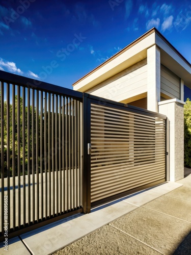 Automatic sliding gate at modern suburban residence