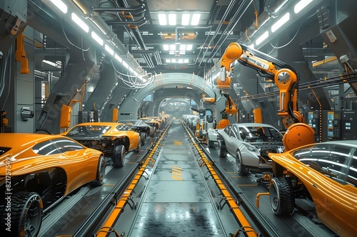 automation, robotic, vehicle, assembly line, manufacturing, futuristic, car, industry, factory, production, assembly, automotive, technology, innovation, advanced, engineering, machinery, precision, efficiency, mechanic, streamlined, progress, intelligence, mechanical, contemporary, cutting edge, development, invention, high technology, modern, metallic, powerful, complex, technical, industrial, revolution, transformation, assembly line, machine