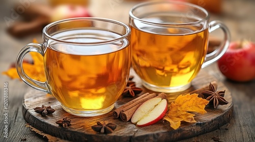 Autumn apple cider mugs, wood, spice, fall