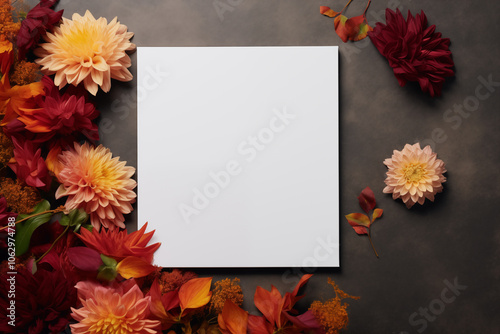 Autumn Flowers and Blank Card on Dark Background - Space for Text