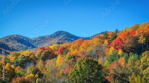 Autumn forest with alpine scenery
