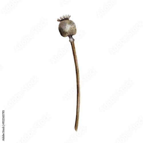 Autumn grey dried poppy heads fall Mack watercolor illustration