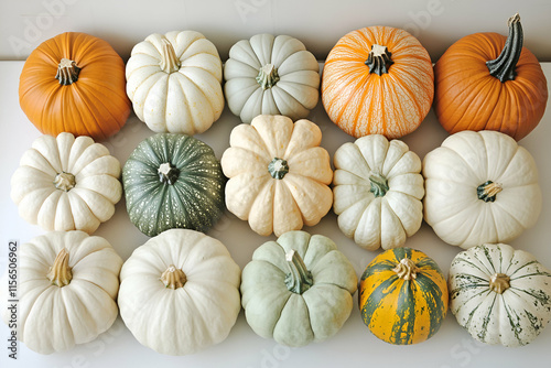pumpkin, gourd, squash, autumn, harvest, fall, vegetable, colourful, collection, diverse, shape, size, hue, orange, white, green, cream, yellow, pastel, decorative, festive, thanksgiving, halloween, seasonal, nature, produce, farm, garden, agriculture, food, background, texture, pattern, still life, photo, image, picture, vibrant, bright, natural, healthy, delicious, autumn color, autumn color
