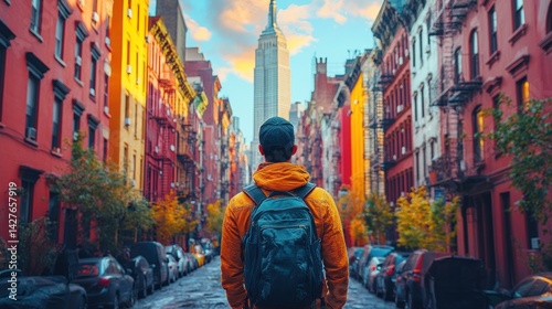 city, street, building, man, backpack, traveler, autumn, fall, colours, urban, new york city, city landscape, architecture, skyline, photo, travel, adventure, exploration, journey, wanderlust, discovery, city life, metropolis, view, perspective, scene, image, picture, photo, snapshot, moment, capture, sightseeing, holiday maker, vacation, holiday