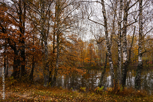 autumn, fall, landscape, season, nature, tree, forest, water, lake, wood, foliage, leaf, gold, orange, yellow, scenic, natural, tranquil, bank, mood, environment, shore, wild, clean, view, silence, vibrant, serenity, wilderness, weather, rural, cloudy, day, plant, outside, grove, picturesque, calm, light, rustic, park, peaceful, colours, beauty, quiet, fresh, scene