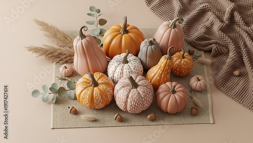 pumpkin, autumn, acorn, cosy, rustic, seasonal, decorative, still life, fall, harvest, eucalyptus, woven, isolated, transparent, background, collection, various