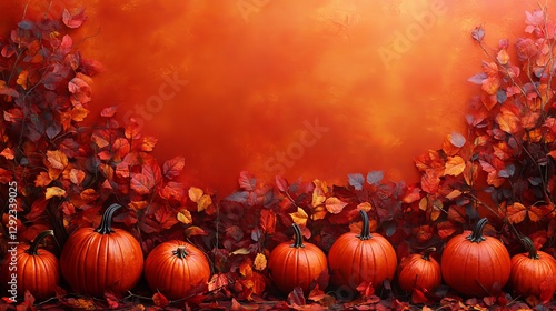 Autumn Pumpkins Surrounded by Colorful Leaves