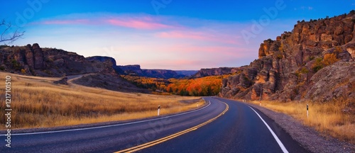 road, highway, canyon, mountain, autumn, fall, tree, nature, landscape, scenic, travel, vista, sunset, sunrise, colours, foliage, winding, asphalt, beauty, view, hiking