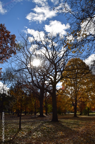 autumn, landscape, nature, tree, park, tree, forest, sky, fall, grass, road, green, leaf, wood, season, blue, leaf, birch, winter, yellow, path, cloud, sun