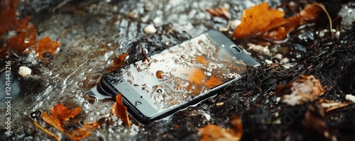 phone, water, autumn, leaf, stream, damage, screen, wet, fall, nature, accident, repair, broken, technology, mobile, liquid, soaked, mud, ground, electronic, photo, image, picture, photo, digital, device, contraption, illustration, graphic, design, media, marketing, advertising, insurance, risk, loss, service, problem, solution