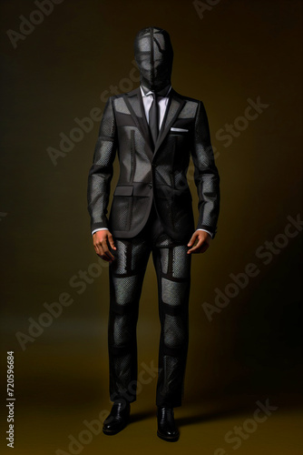 one person, sophisticated, anonymity, artistic, haute couture, sartorial, fashion, model, suit, black, standing, elegant