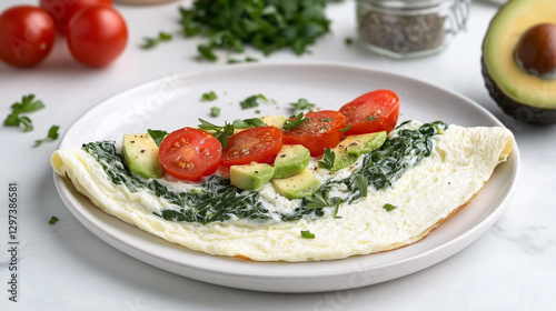 omelet, avocado, spinach, albumen, breakfast, healthy, protein, fresh, epicure, food, meal, brunch, light, alimentary, plated, cherry tomato, herb, parsley, lemon, creamy, delicious, vibrant, organic, delicate, culinary, vegetarian, stylish, presentation, food photography, homemade, natural, aesthetic, rustic, wholesome