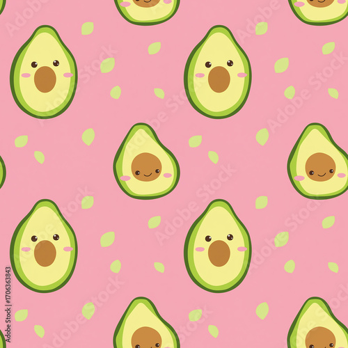 Avocado kawaii seamless pattern