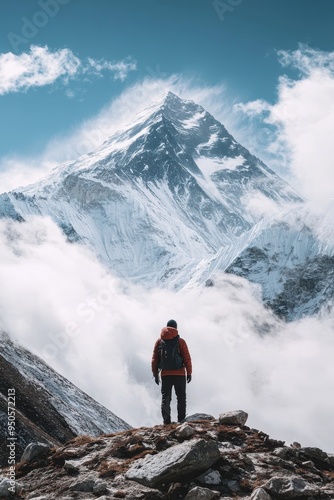 mountain, peak, snow, landscape, sky, cloud, nature, outdoors, hike, trek, adventure, explore, travel, expedition, exploration, mountaineering, climber, hiking, trekking, alpinist, scenic, panoramic, vista, majestic, rugged, remote, serene, tranquil, solitude, isolation, immensity, grandeur, awe, inspire, adventurous, challenging, rewarding, breathtaking, stunning, magnificent