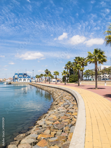 marina, summer, andalusia, beach, blue, cloud, fluffy, palm tree, promenade, sea, spain, vacation, water