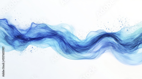 Azure blue liquid flows horizontally across a white canvas, creating an airy elegant effect