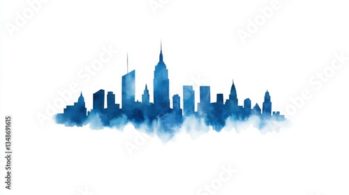 Azure Cityscape Watercolor Silhouette of a Skyline, Art, Design