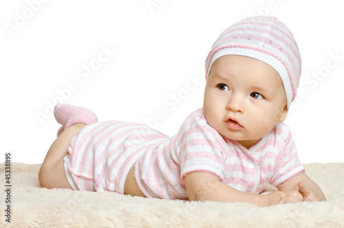 portrait, boy, girl, baby, children, children, little, tot, dummy, pacifier, tiny, small, beauty, beautiful, young, photo, image, infant, lie, cutie, white background, on white, crawl, isolation, horizontal, see, look, gaze, stare, isolate, isolated, children, pink, dress, crawling, creep, creeping