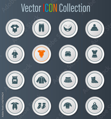 Baby clothes icons set