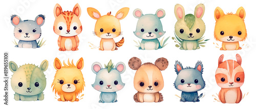 Baby cute animals watercolor set. Hand drawn set small animals. generated Ai