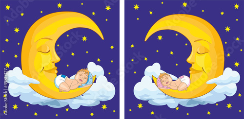 baby, children, cloud, dream, girl, boy, newborn, happiness, love, new life, vector, illustration, moon, moonlight, month, new moon, object, satellite, night, yellow, bright, cartoon, vignetting, picture, single, art, painting, space, romantic