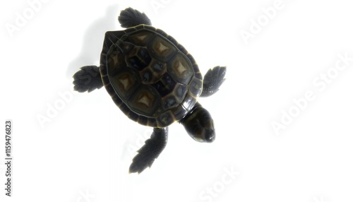turtle, baby, hatchling, reptile, shell, pattern, texture, wildlife, nature, animal, photo, macro, portrait, backlit, minimal, serene, peaceful, aquatic, water, white, background, isolated, fauna, cute, small, dark, light, contrast, pet, reptile, stock, image, photo, picture, commercial, closeup, detail