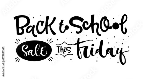 Back to school Sale this Friday quote. Back to school Sale black and white hand drawn lettering logo phrase.