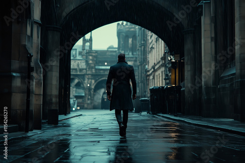person, city, adult, street, people, overcoat, 1, urban, male, outdoors, man, walking, unrecognizable, man, architecture, building, dark, lifestyle, business, scotland, britain, exploration, day, europa, alley, colours, footpath, narrow, businessman, direction, district, mystery, stone, view, old, wall, mid, black, style, town, coat, pedestrian, white, ai